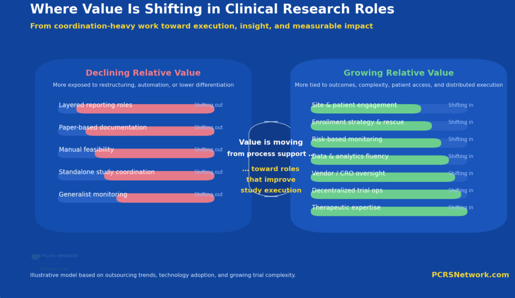Value in clinical research is shifting away from coordination-heavy roles toward execution, insight, and direct impact on study performance.